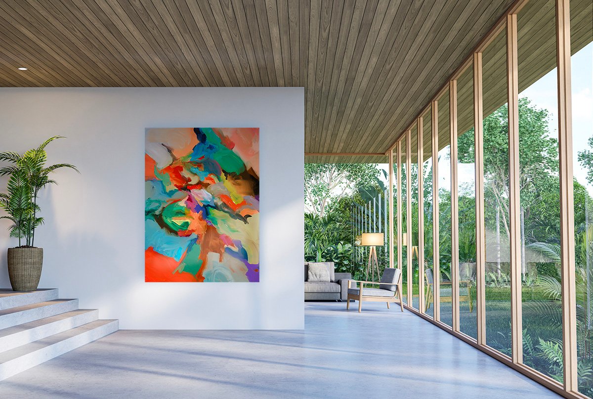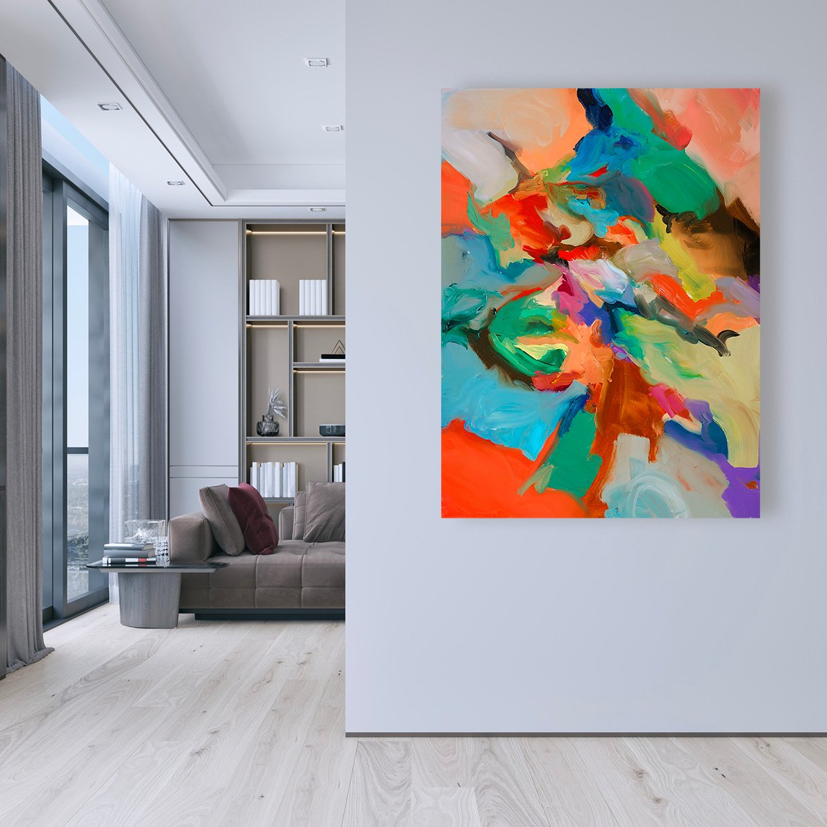 The painting will be carefully and professionally packed and shipped within the next 3 business days upon receipt of payment. Dimensions (inches): height: 48”, width: 36″, depth: 1 and 1/2″.